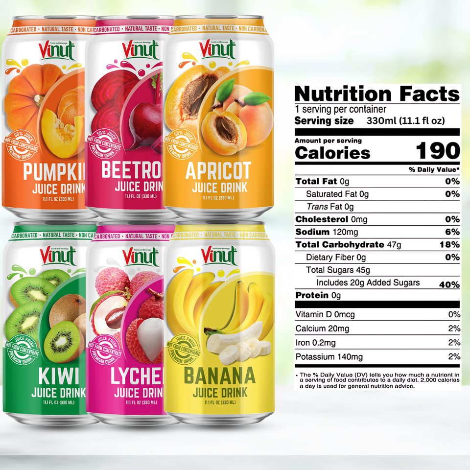 For VINUT Mixed Fruit Puree 330ml 11.1 Fl oz Sugar-Free Juice Drink 24 Cans/Carton OEM Private Label Free Sample Filtered