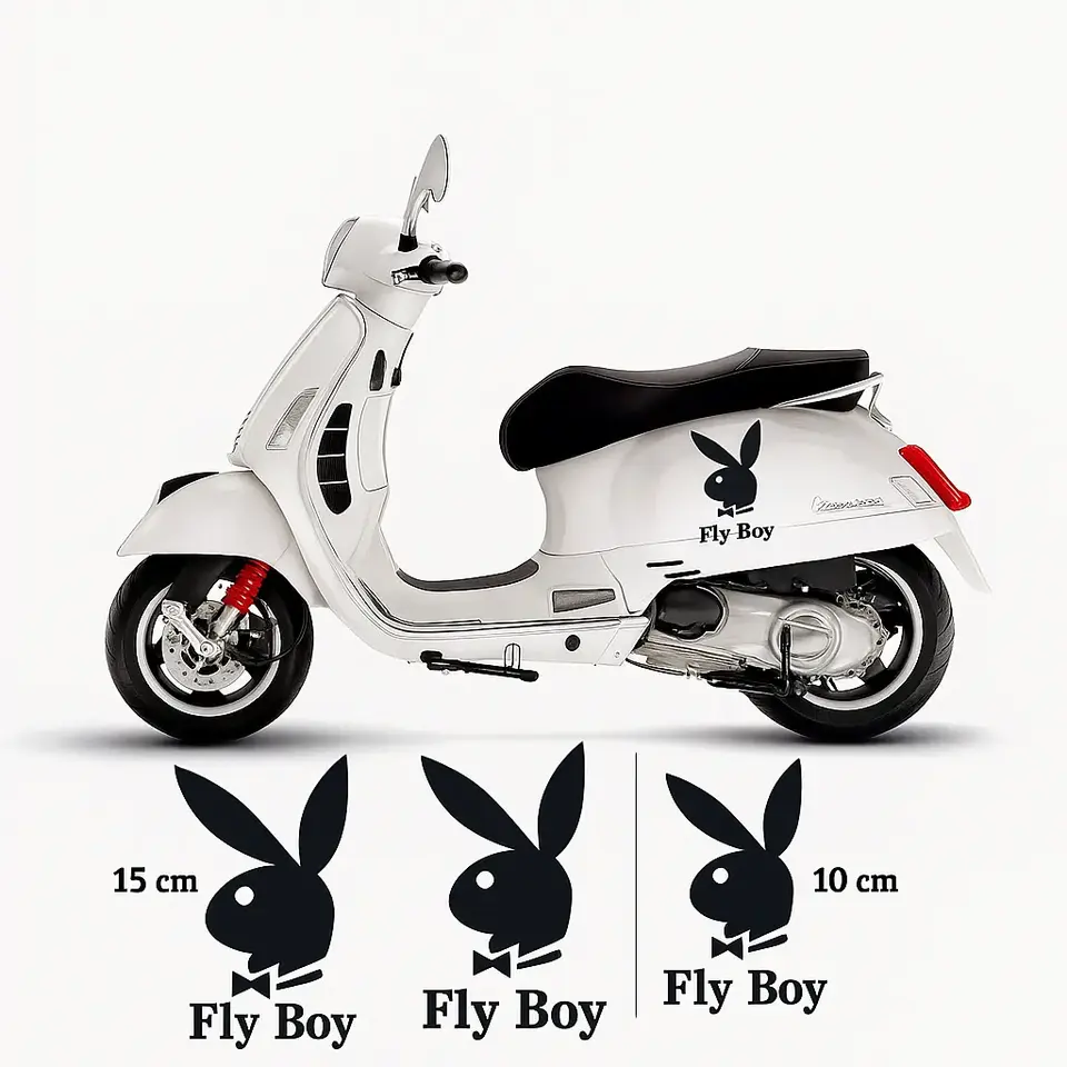 For Vespa Fly Boy Decals Sticker Set of 3 Custom Size Rabbit Logo Motorcycle Stickers for Decoration