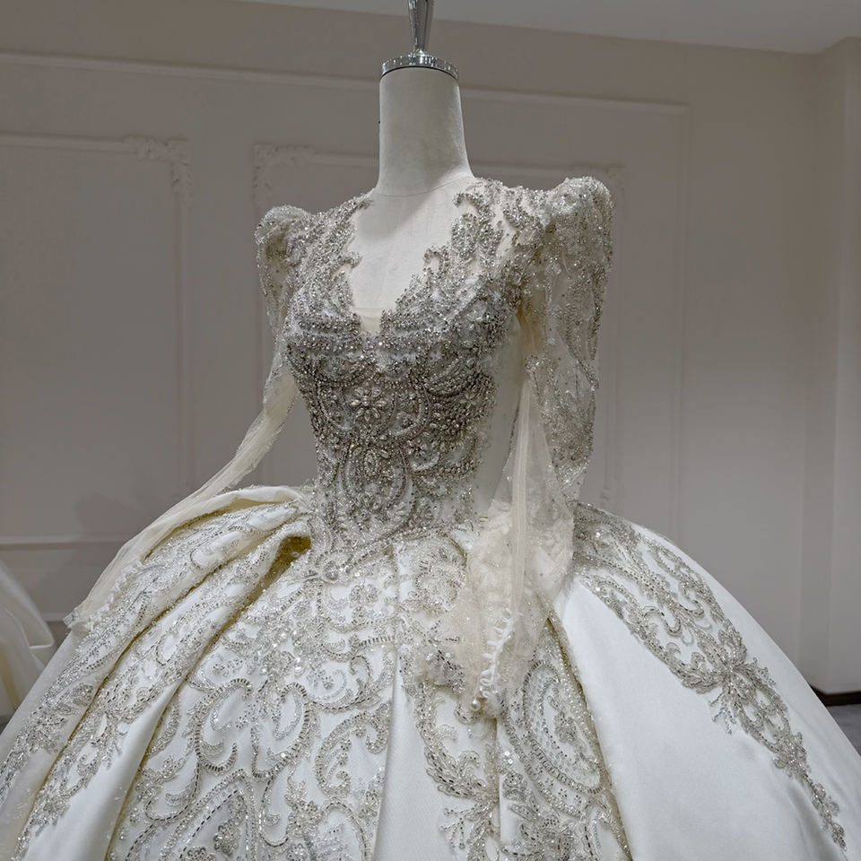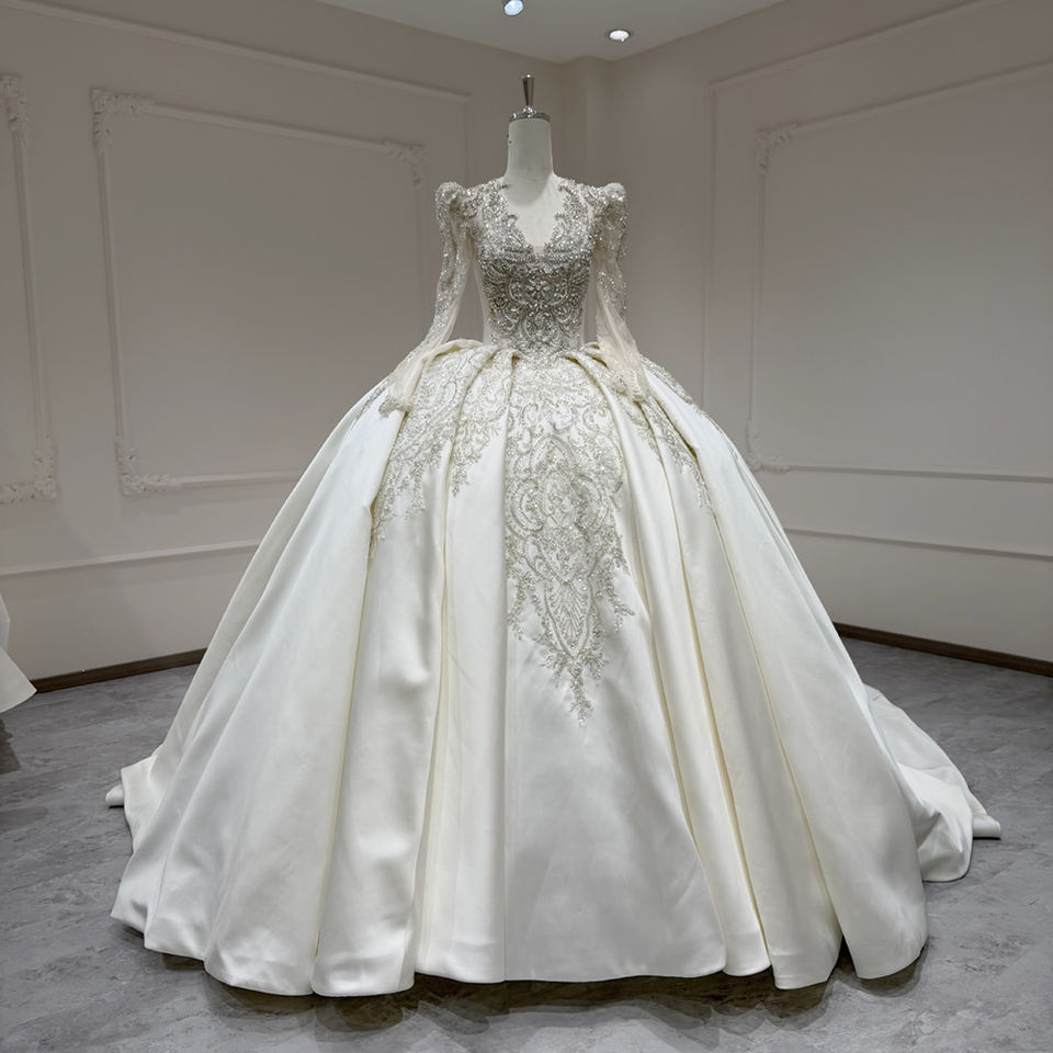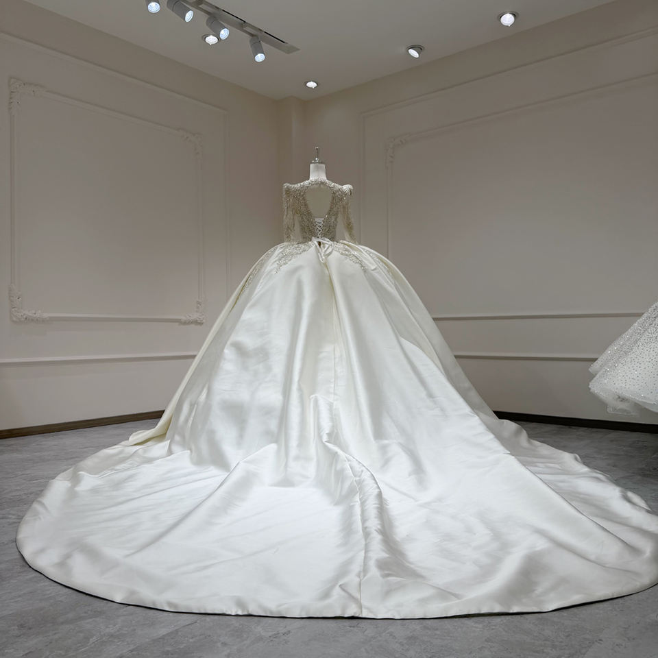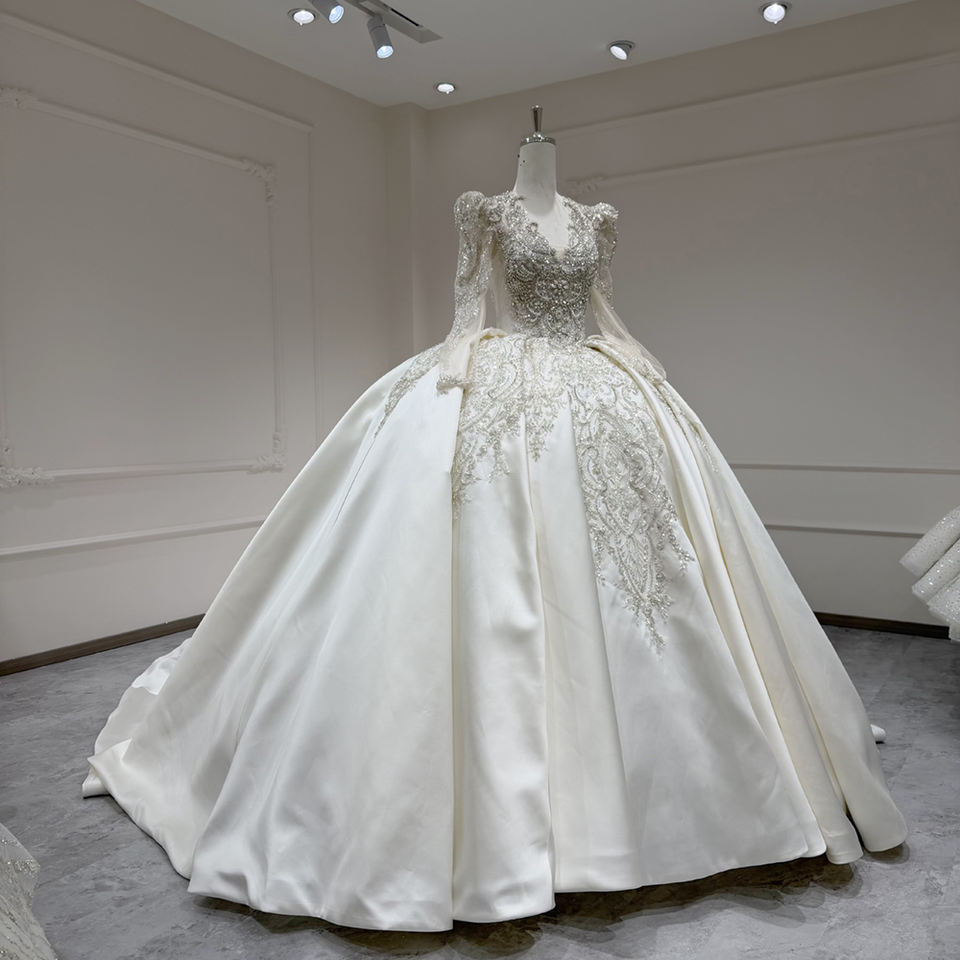 For XX65 Modern Elegant V-Neck Satin Floral Lace Appliques Wedding Bridal Gowns with Chapel Train for Women