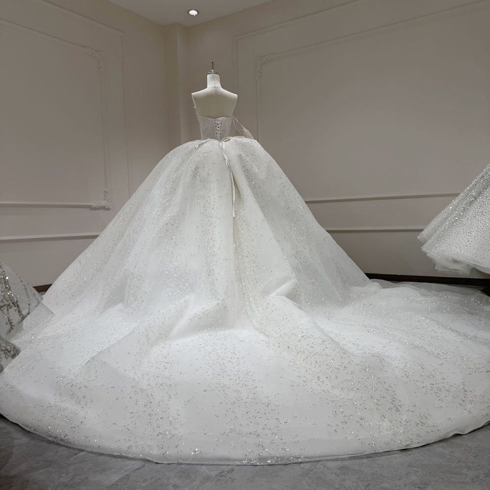 For XX69 Modern Sparkly Strapless Sequined Floral Lace Crystal Long Ball Gown Wedding Dress
