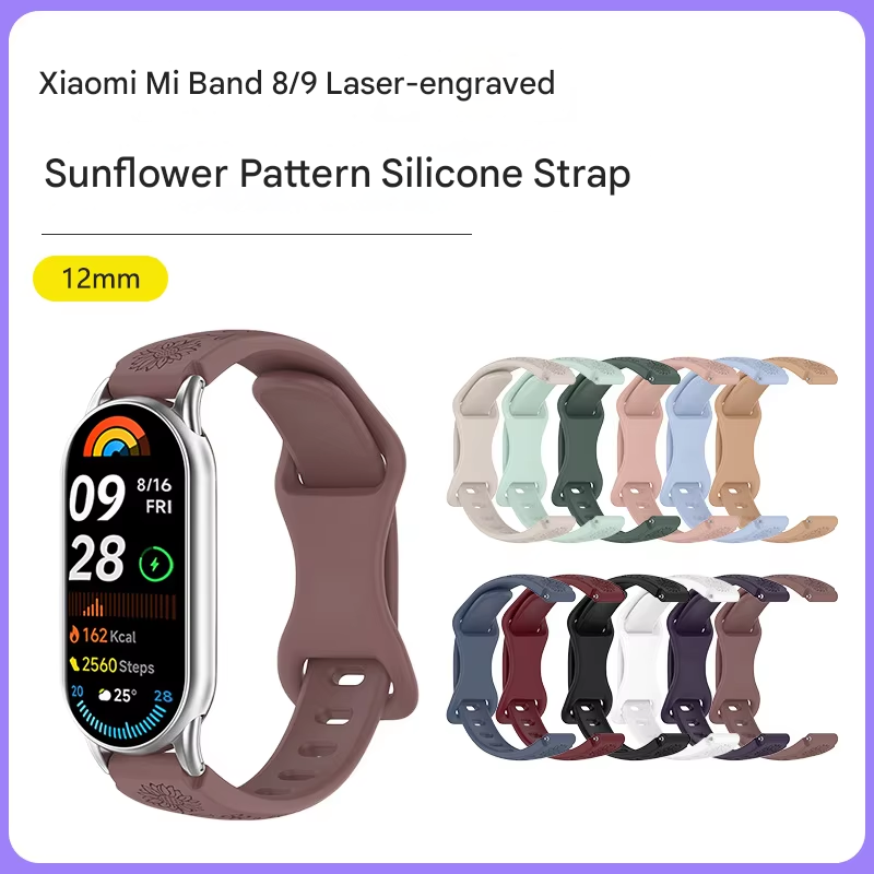 Additional Tips:Mi Band Laser-Engraved Sunflower Silicone Strap