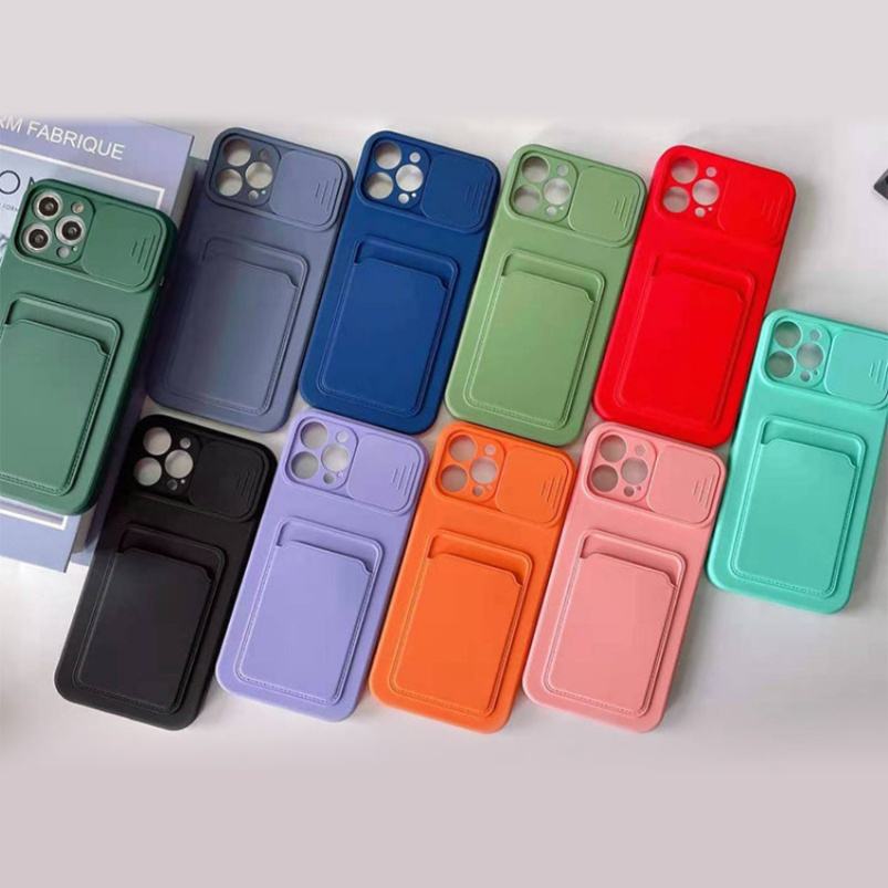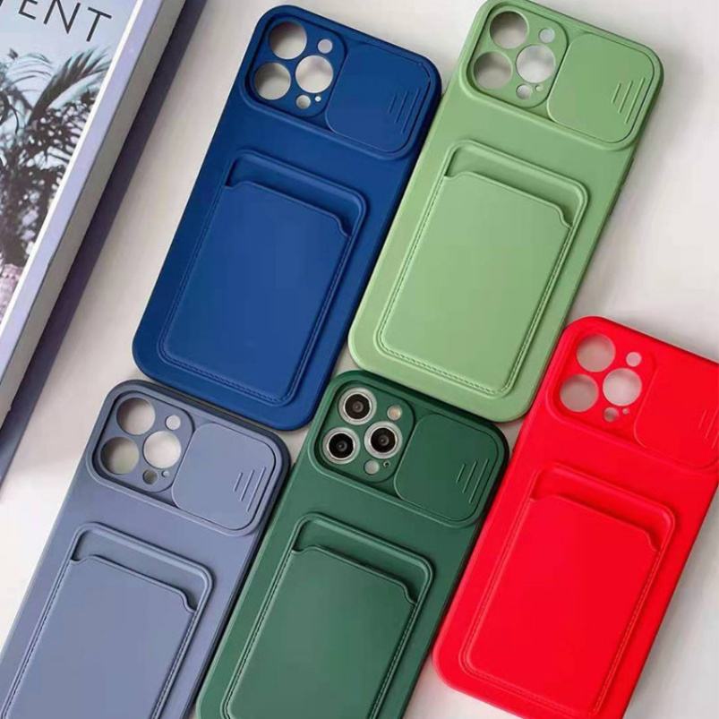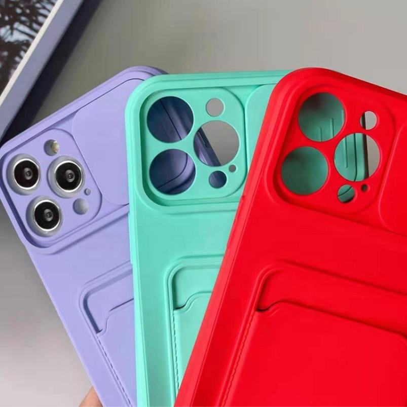 For iPhone 12 Lens Protecting Phone Case With Card Bag, for iPhone 12 Tpu Push the Windows Card Phone Case