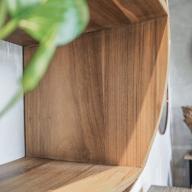 For sale Teak Wood Wall Display Rack Unique Floating Shelf Organizer for Modern Rustic