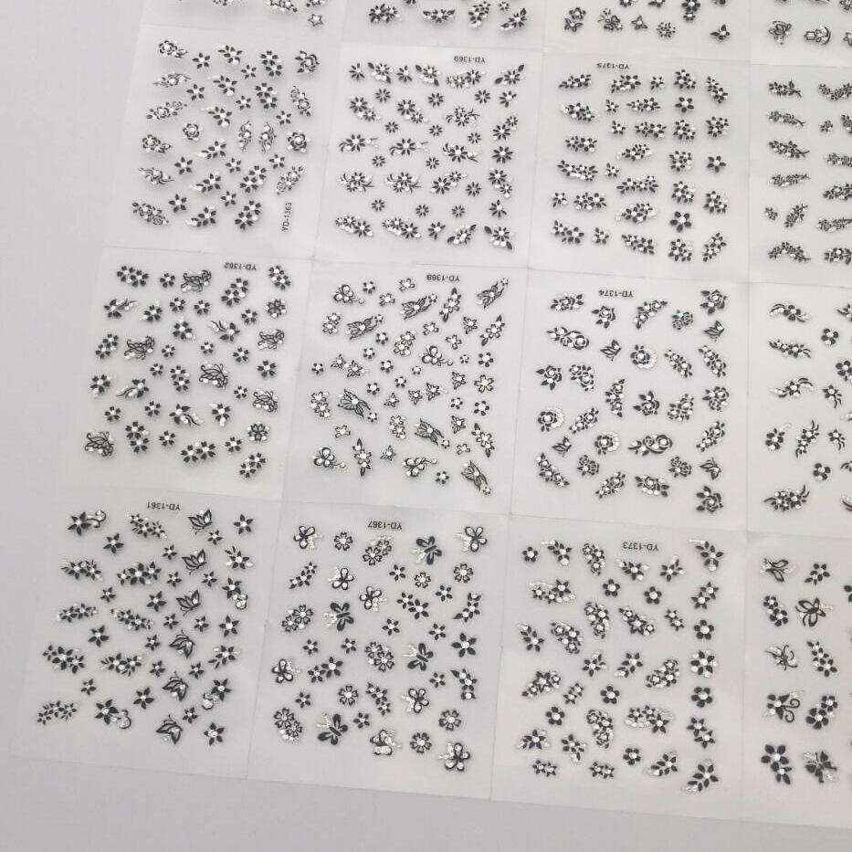Foreign Trade Cross-Border Hot-Selling 3D Decorations Wholesale 50 Sheets Set Black and White Nail Art Stickers Mixed Pack