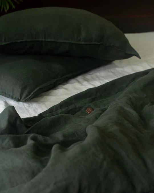 Forest Green 100% Linen Bedding Set Modern Solid Style 4pcs Quilt Cover Duvet Covers Double Bed Comforter for Home Use