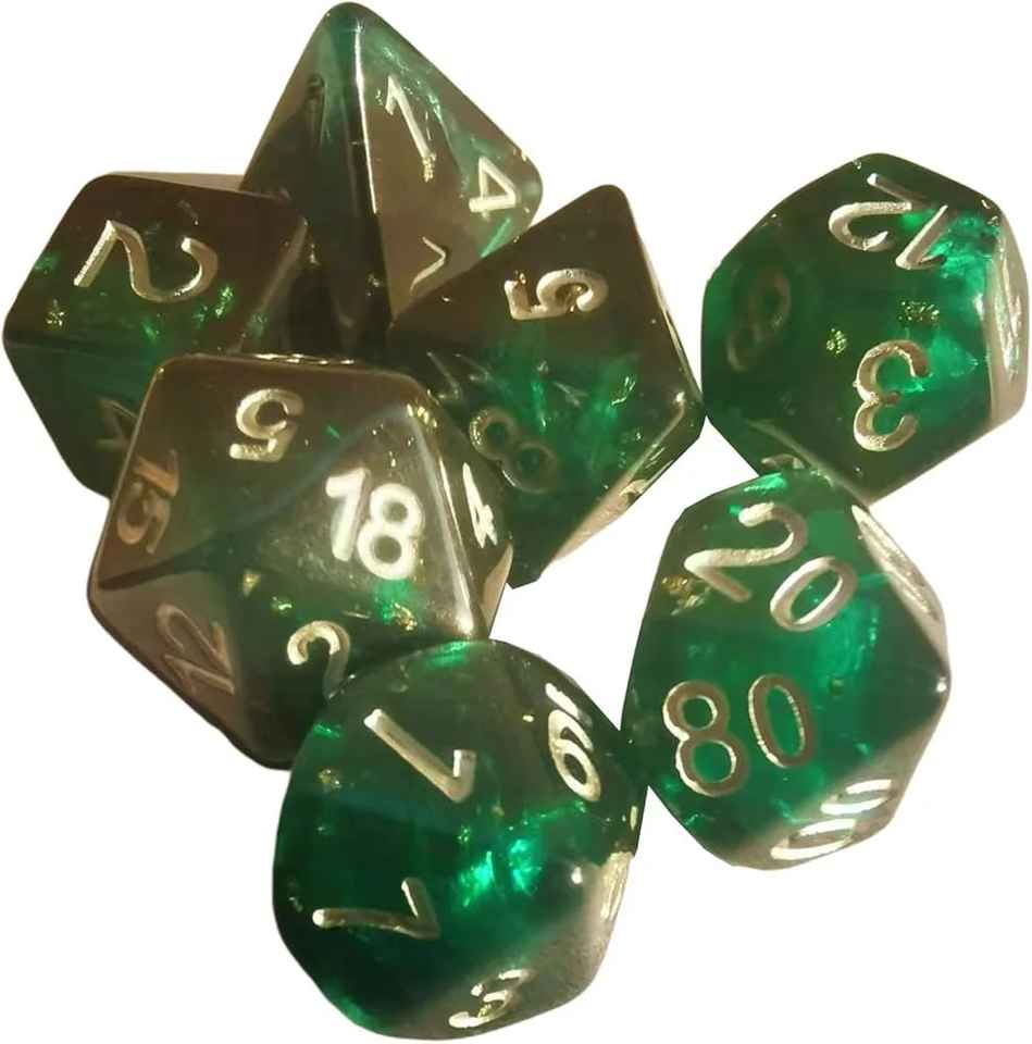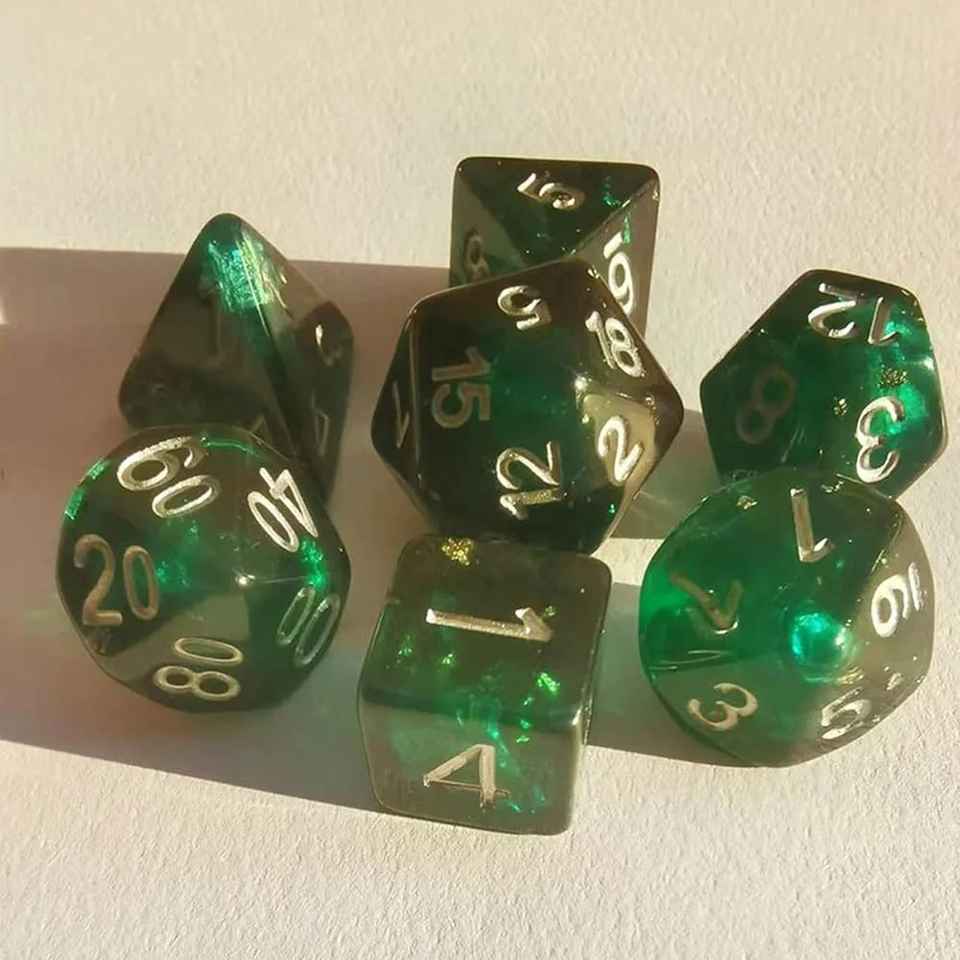 Forest Green Resin Angel Craft Dice Set 7-Piece Polyhedral Eco-Friendly Waterproof RPG Gaming Dice Silver Numbers for DND