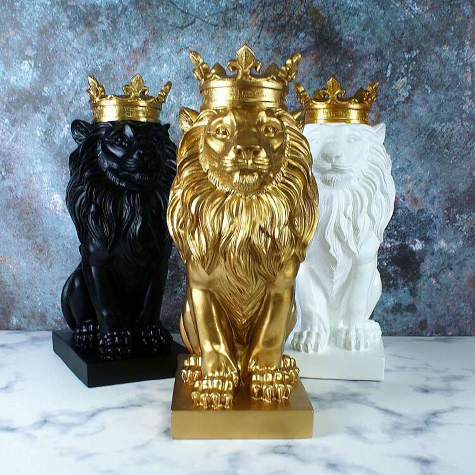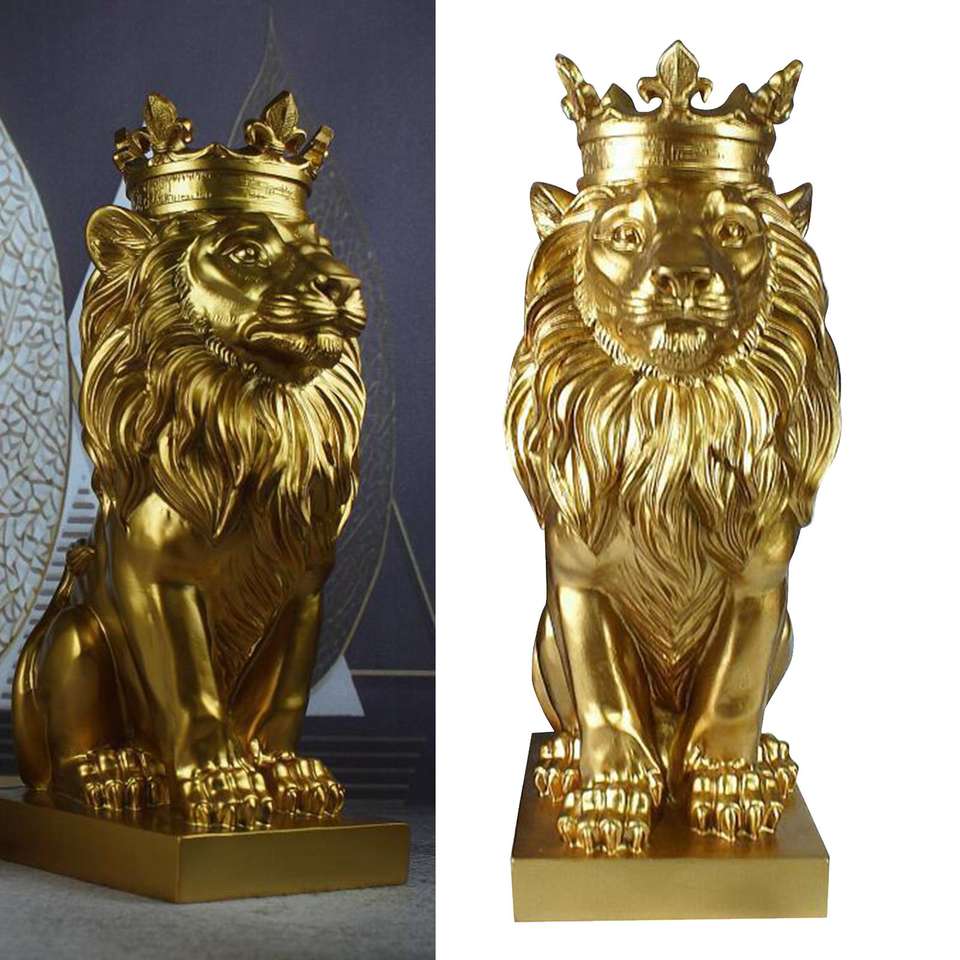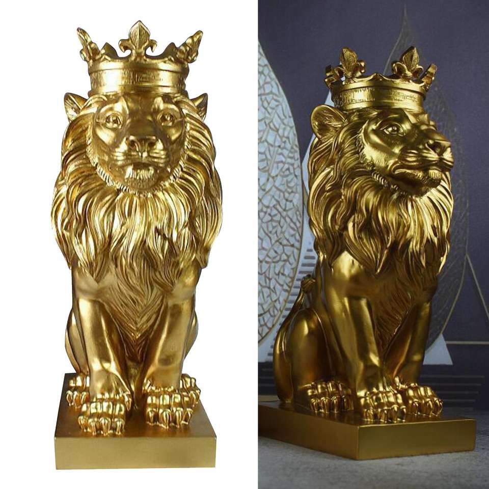Forest King Showpiece Model High Gold Plated Casted Solid Lion Sculpture Decorative Figure For Home & garden