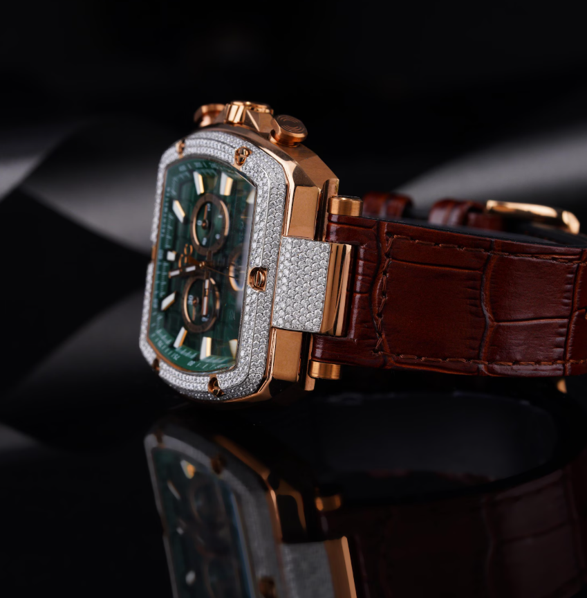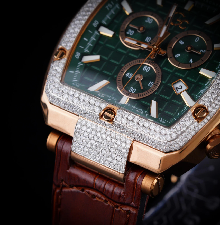 Forest Majesty Oval Stainless Steel Mechanical Chronograph Diamond Moissanite Case 50 Bar Water Resistant Unisex Watch VVS