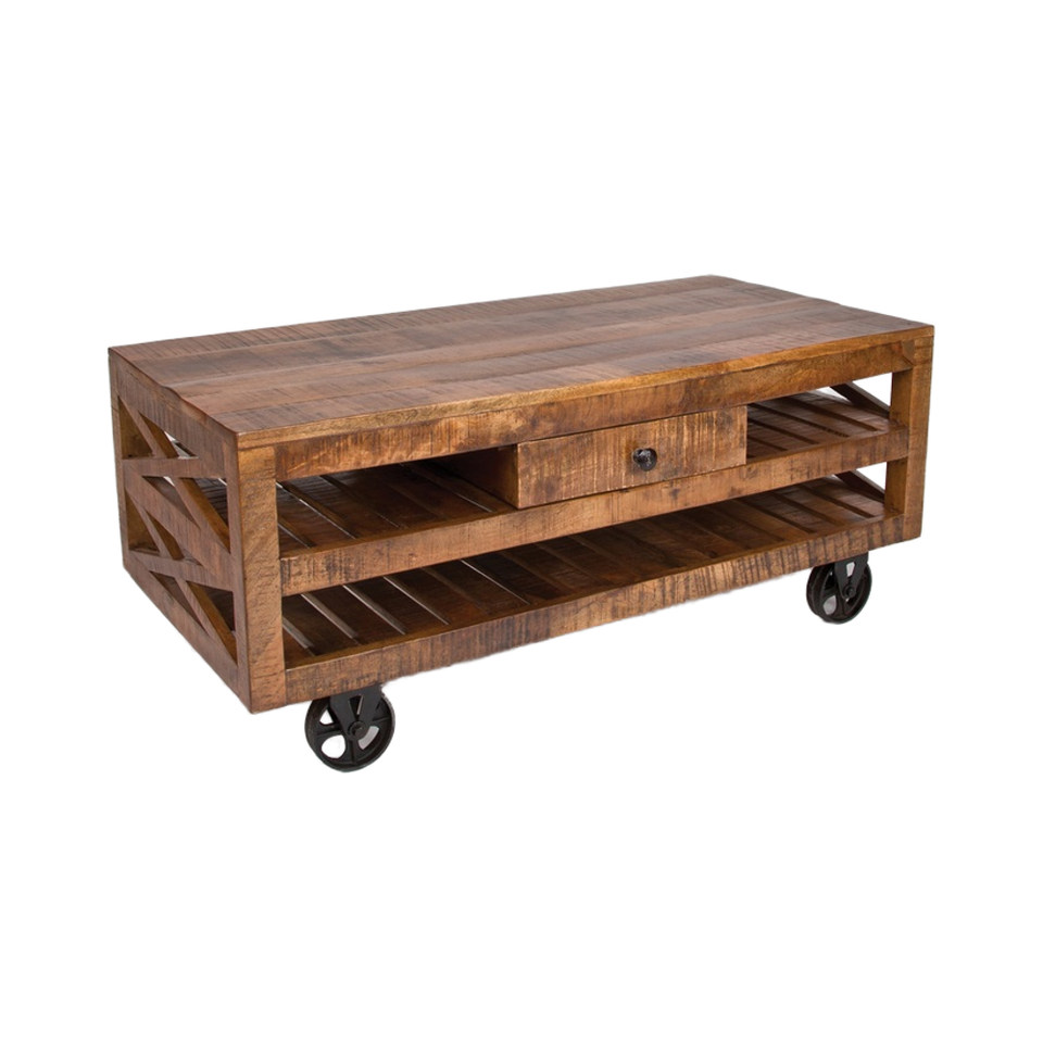 Forever Natural Mango Wood Industrial Cart Coffee Table Natural Rough Finish Beautiful Home Furniture for Home and Hotel Use