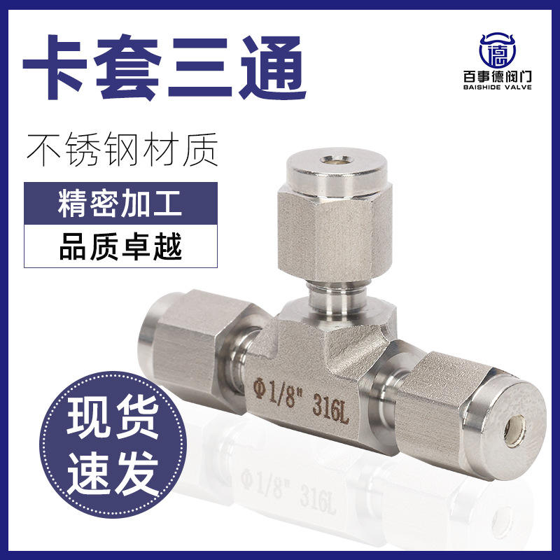 Forged Body Stainless Steel T-Type Tee Double Ferrule Straight Connector Quick Adapters Connectors Explosion-Proof High Pressure