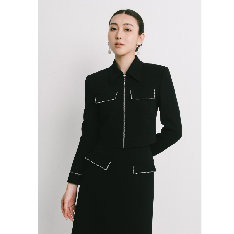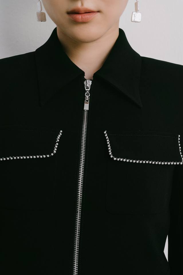 More details:Oversized collar, box pleats, four patch pockets button with flaps.