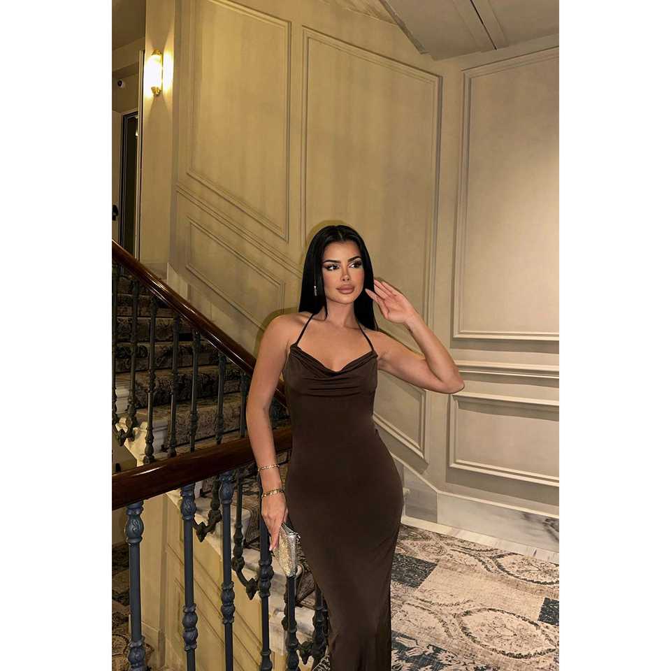Women's Vintage Summer Dress Sleeveless Hanging Neck Slit Evening Dress Simple Fashionable Design for Parties