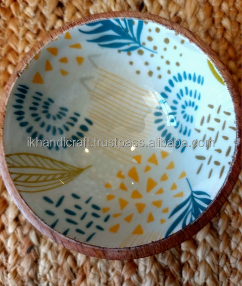 Trending Eco-Friendly Bohemian Enamelled Mango Wood Serving Salad Bowls Fully Recycled Plastic Parties Tray Set New Design