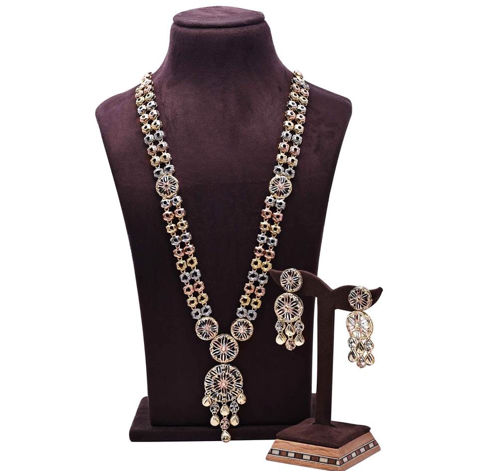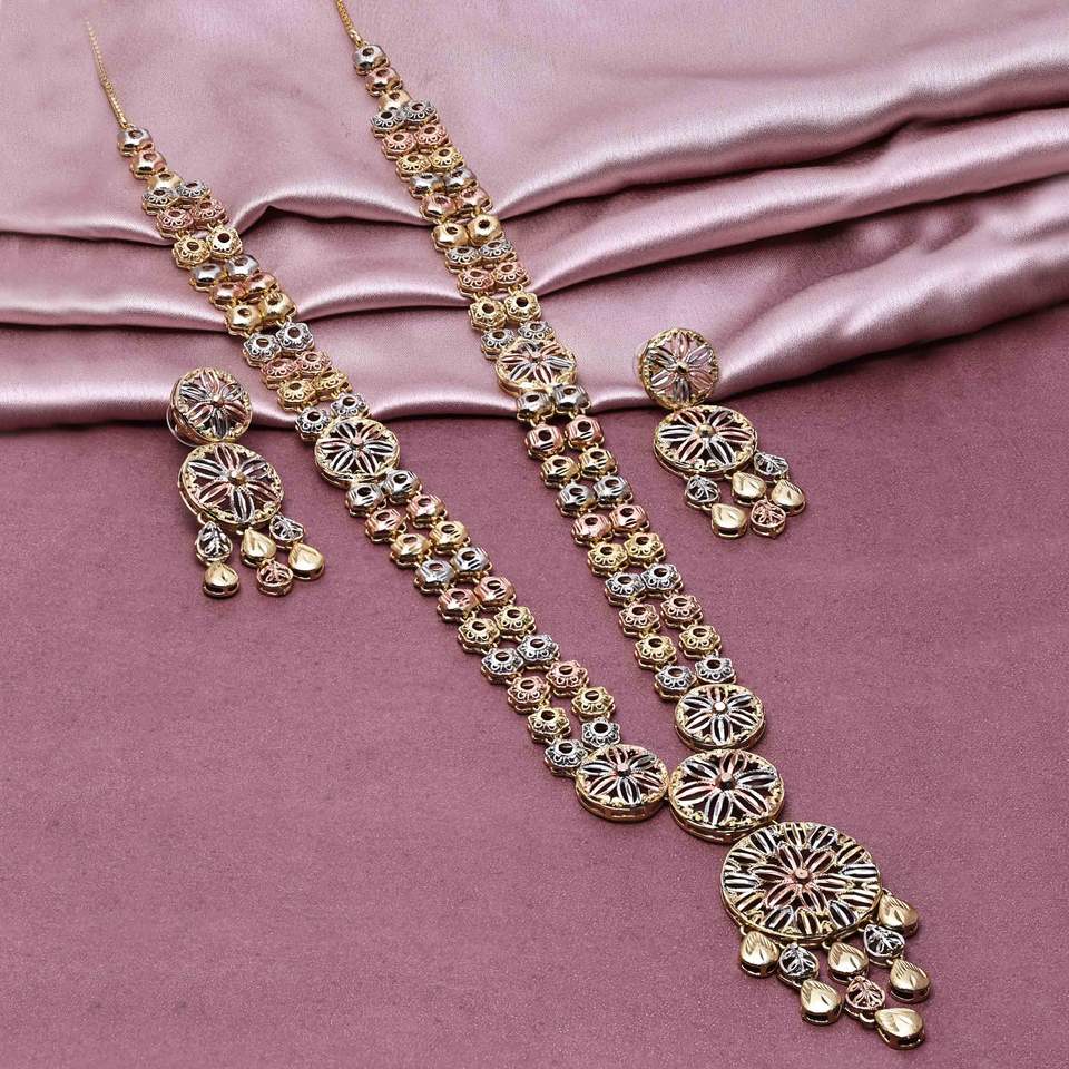 Wholesale 3 Tone Long Necklaces Set Indo-Western Fashion Jewelry Box Chain Main Material Brass Tri Color Turkey Long Jewelry Set