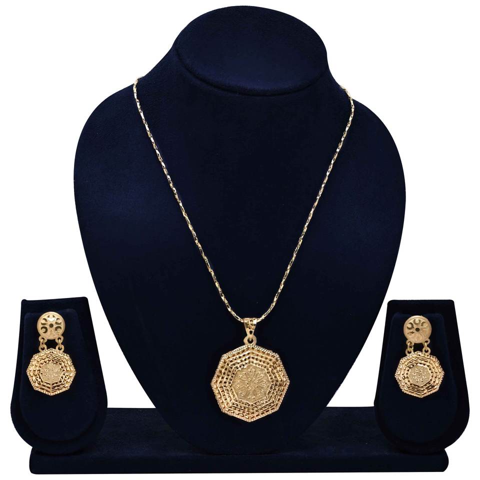 Forming Pendant & Earrings Set, Elegant Pendant & Earrings Set, Gold Filled Chain Pendant Set, Brass Gold Plated Luxury Jewelry.