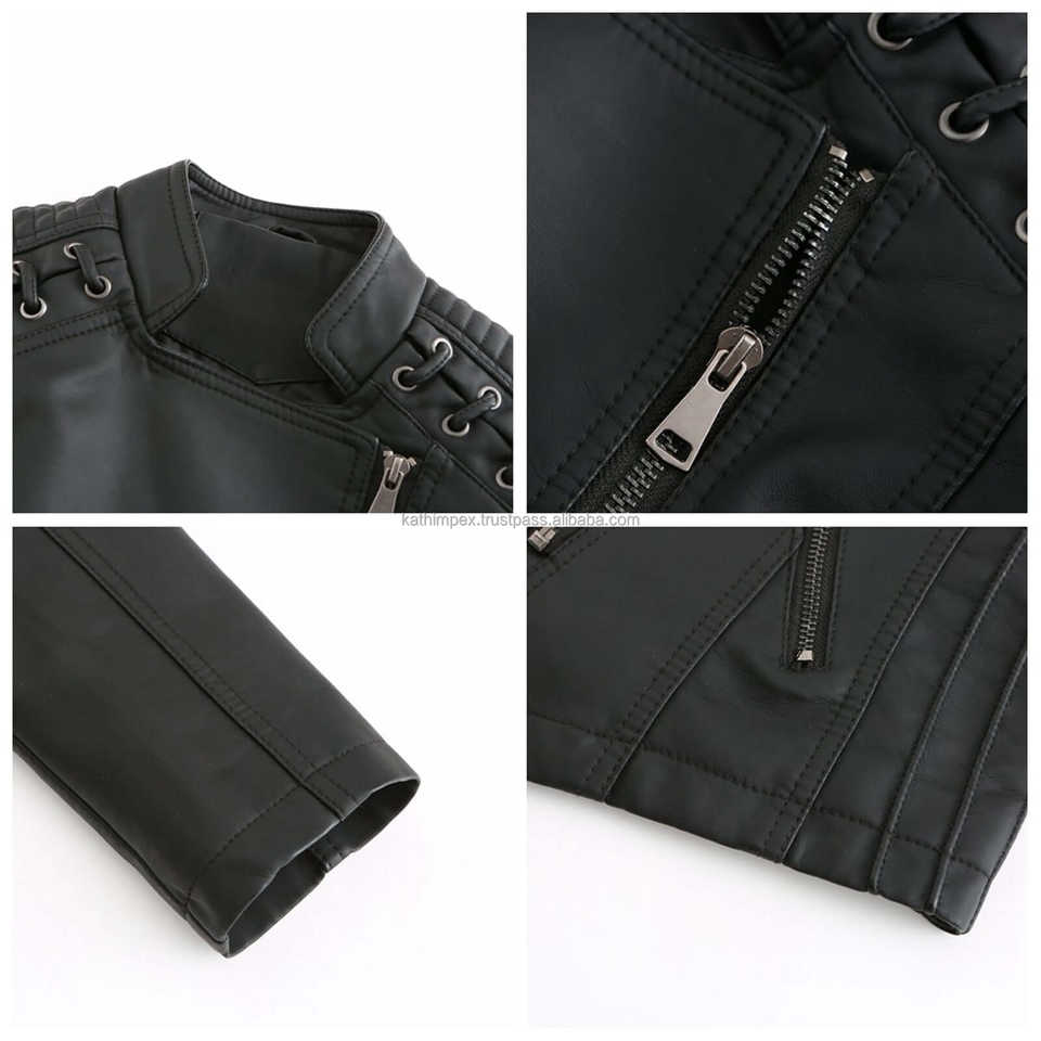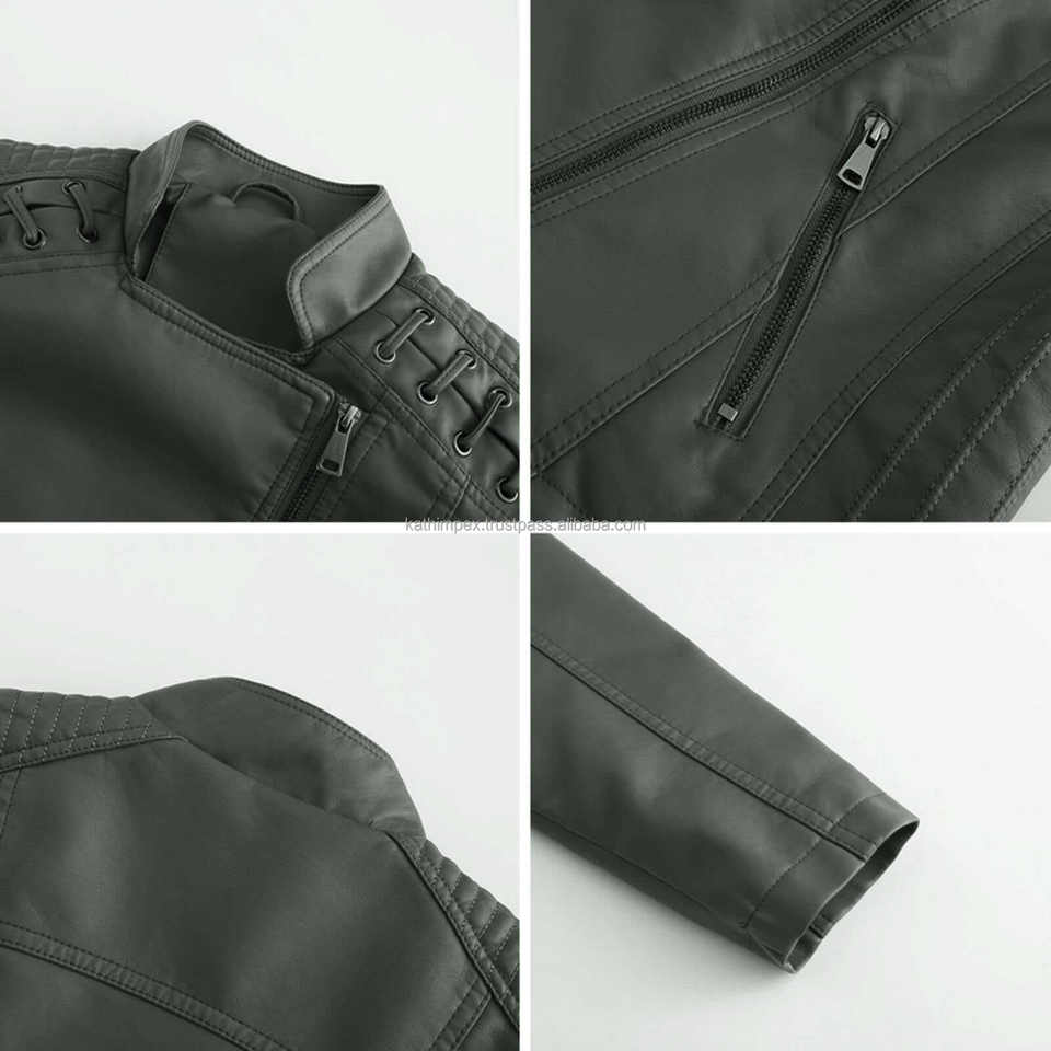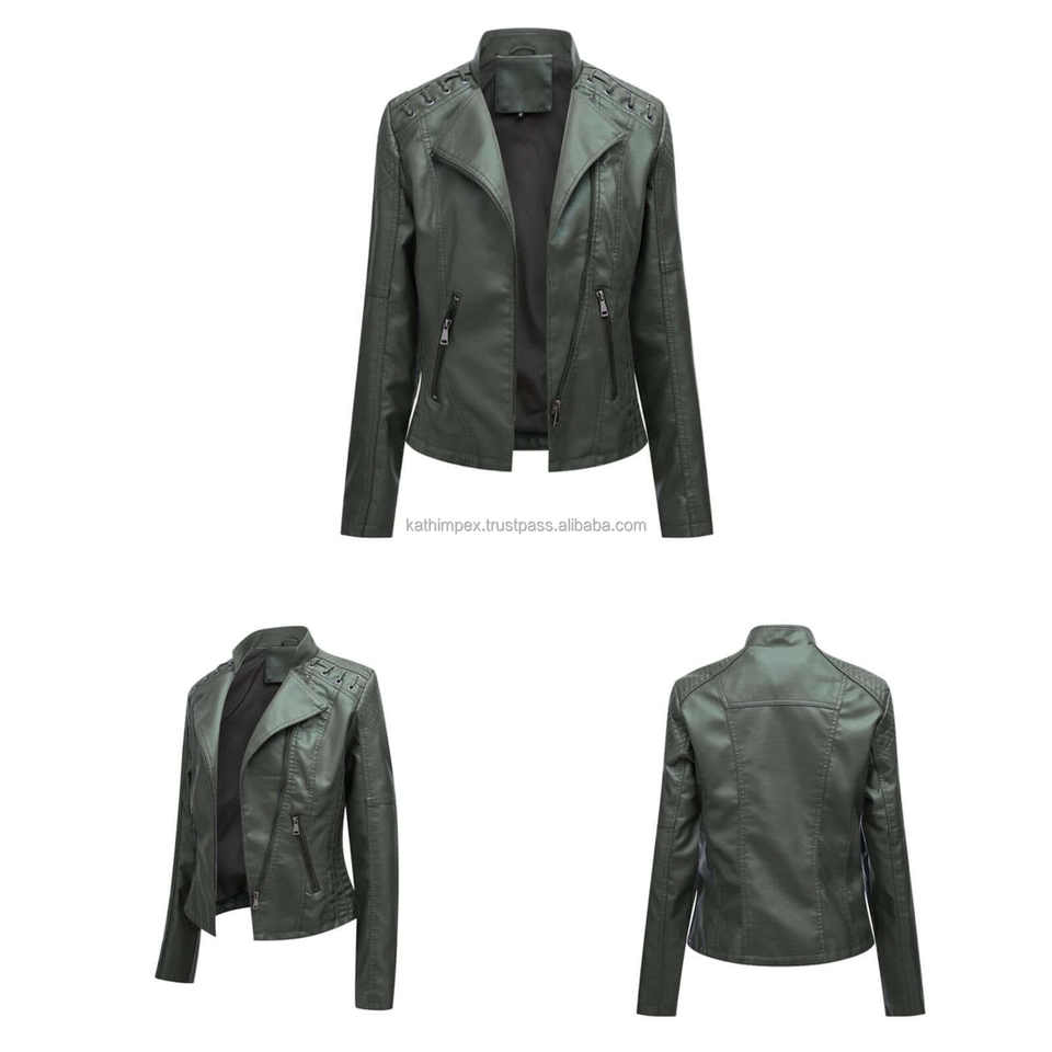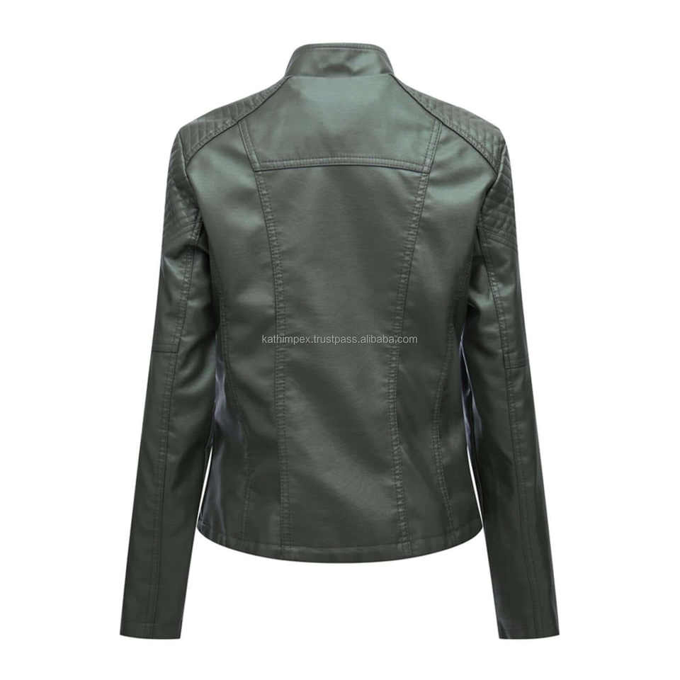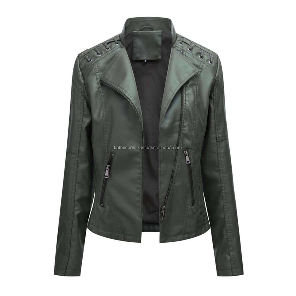 Forrest Green Zipper Moto Biker Style Fitted Quilted Stitch Leather Women's Jackets with Lace Accents Zip Pockets Sleek Fall