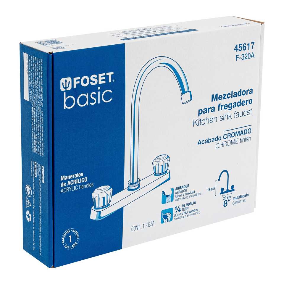 Foset F-320A 8' Contemporary Kitchen Mixer Curved Neck Rose Gold Finish Brushed Surface Rotatable Hot Cold Water Acrylic Handles