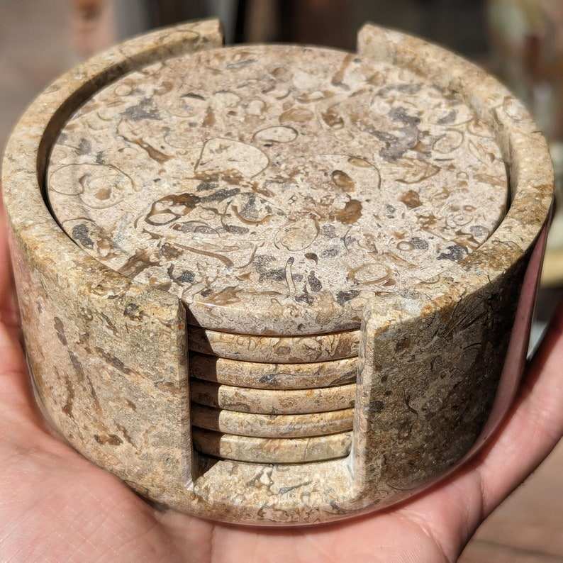 Fossil Marble Drink Coasters Set Of Six Stone Coasters Rustic Table Decor