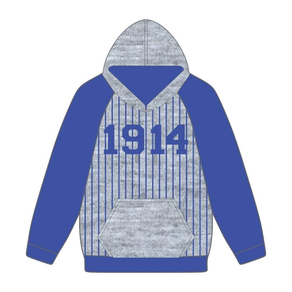 Founding Year 1914 Phi Beta Sigma Grey Body Blue Raglan Pinstripes Pullover Hoodie Fraternity Apparel Custom Divine Nine HBCU