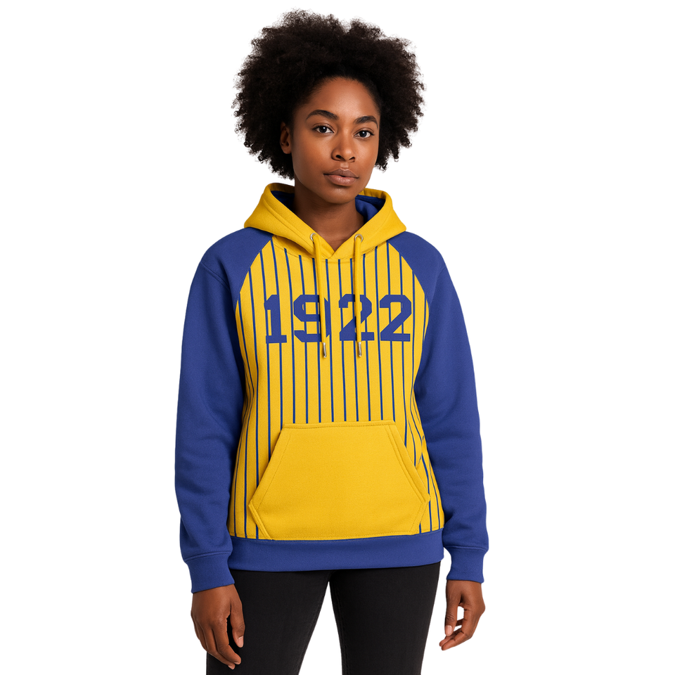 Founding Year 1922 Sigma Gamma Rho Gold Body Blue Raglan Pinstripes Pullover Hoodie SGRho Sorority Apparel Divine Nine HBCU