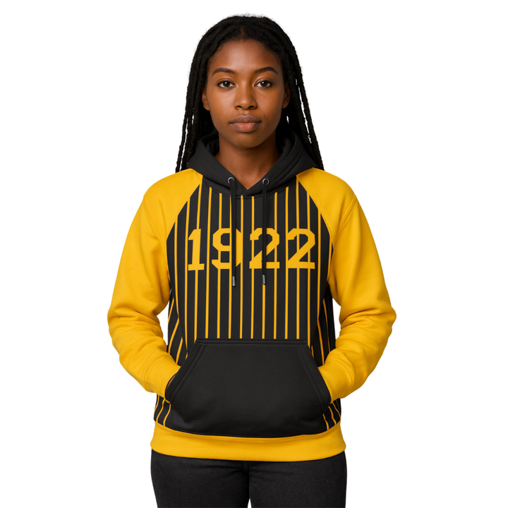 Founding Year 1922 Sigma Gamma Rho Black Body Gold Raglan Pinstripes Pullover Hoodie SGRho Sorority Apparel Divine Nine HBCU