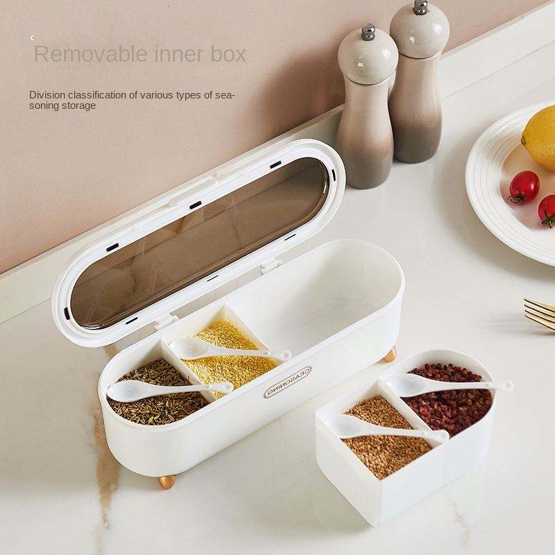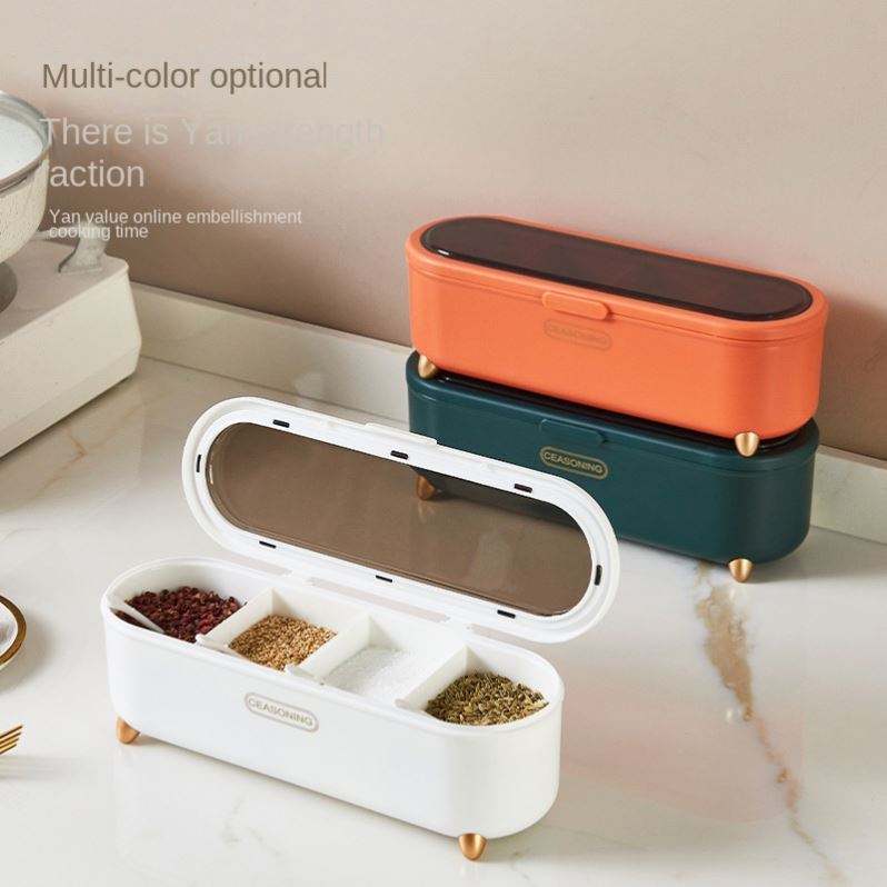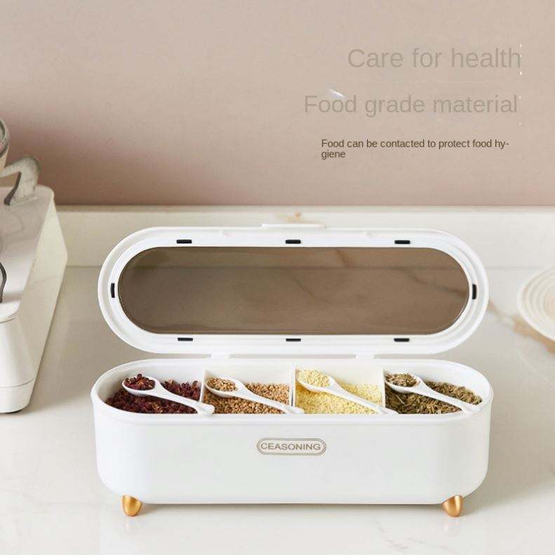 Four-Compartment Kitchen Seasoning Box Multi-functional Household Plastic Lid for Sugar Salt Other Microwavable