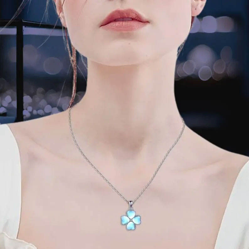 Four Leaf Clover Opal Look Sterling Silver Plated Pendant Necklace Lucky Charm Jewelry for Women Wedding Party Wholesale