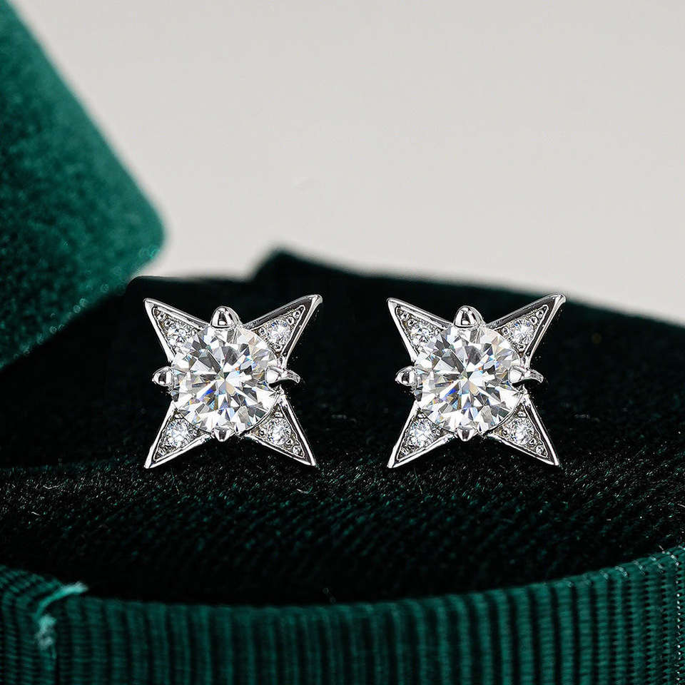 Four-Pointed Star Shape 0.50 CT Brilliant Cut Moissanite Center Stone Vintage Stud Earrings For Women S925 Sterling Wedding Gift