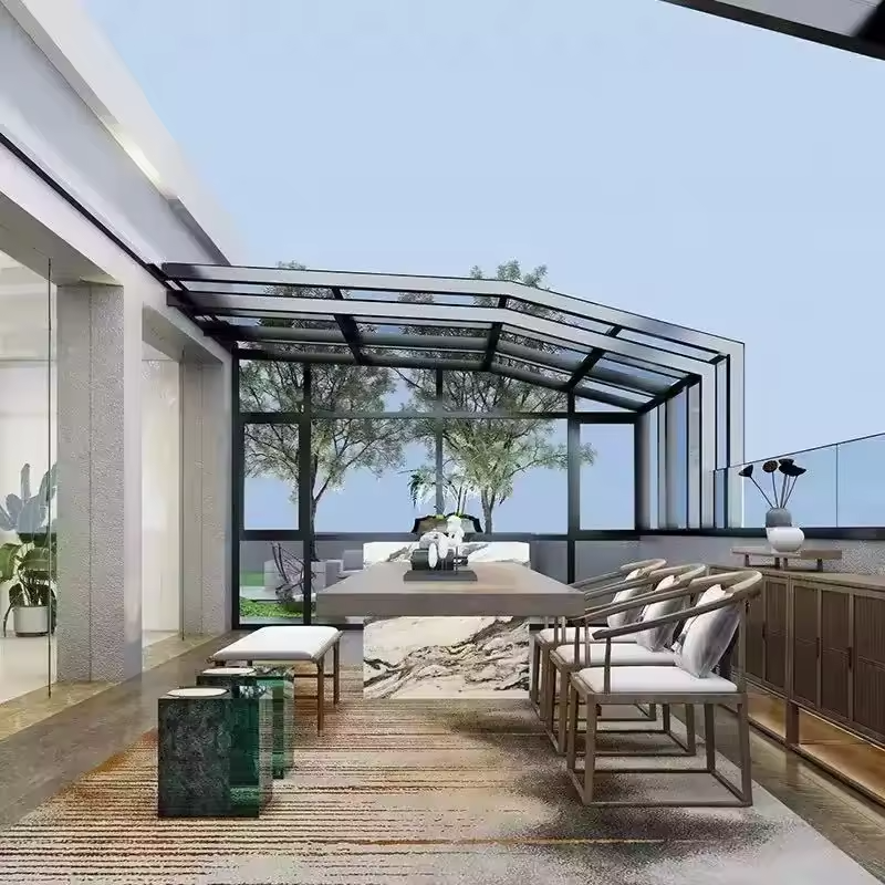 Four Season Aluminum Folding Sunroom with Powder Coated Frame Sealed Joints Wind and Rain Proof