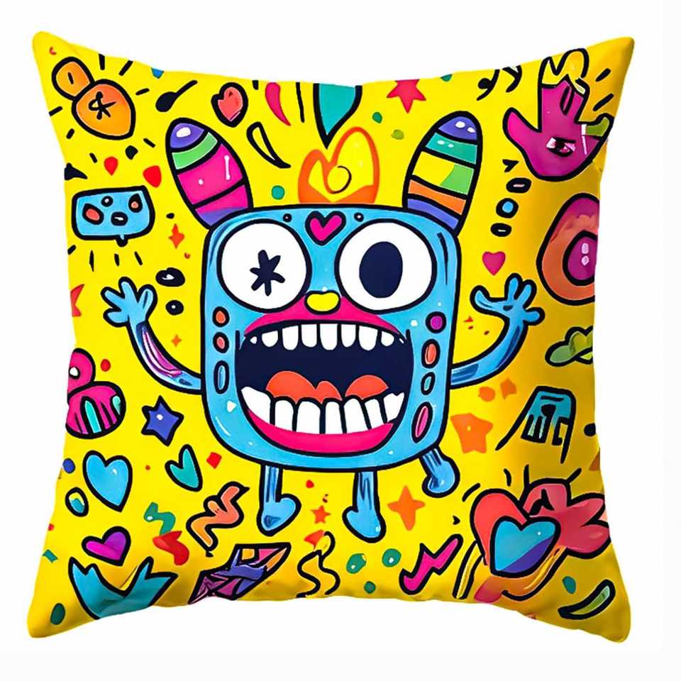 Four Seasons Children Pillow Cartoon Monster Printing Throw Pillowcase Home Peach Skin Fabric Cushion Cover Sofa Decoration