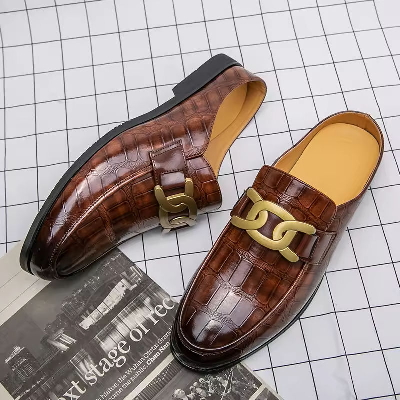 Four Seasons Half Loafer Plus Size Men's Anti-Slip Outdoor Slippers Suede Leather Dress Flat Sandals