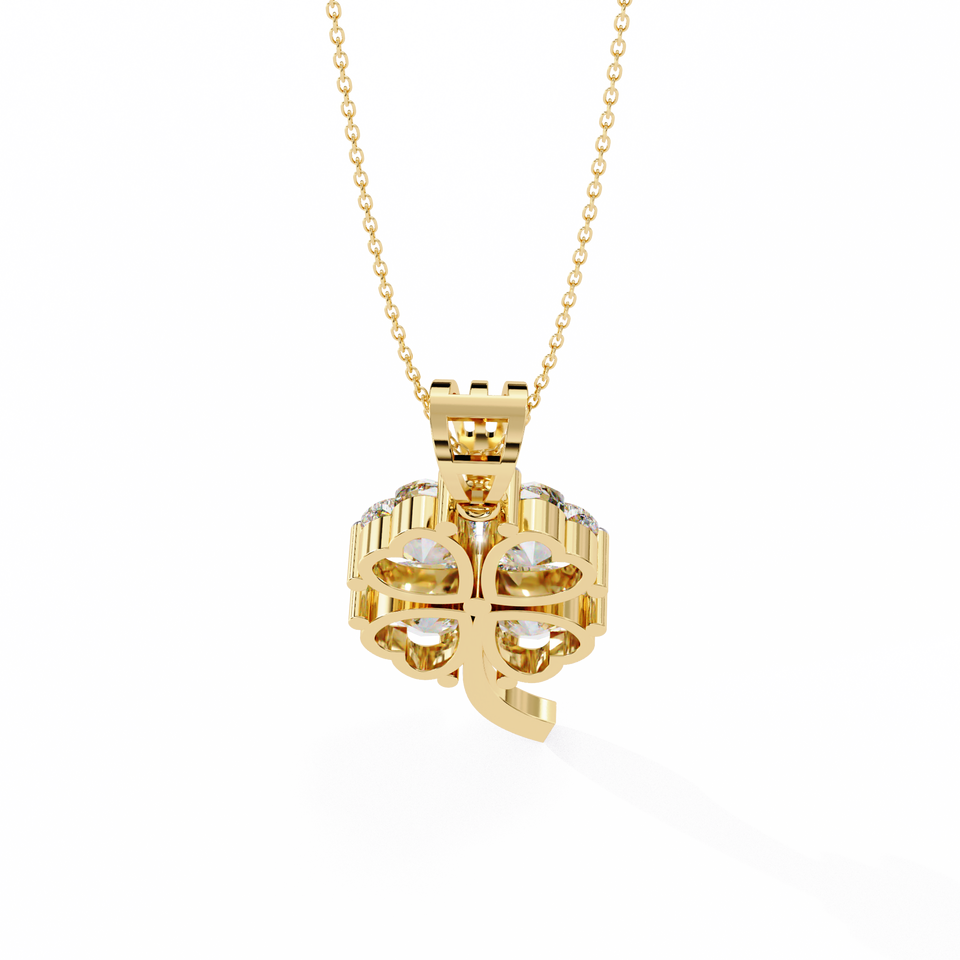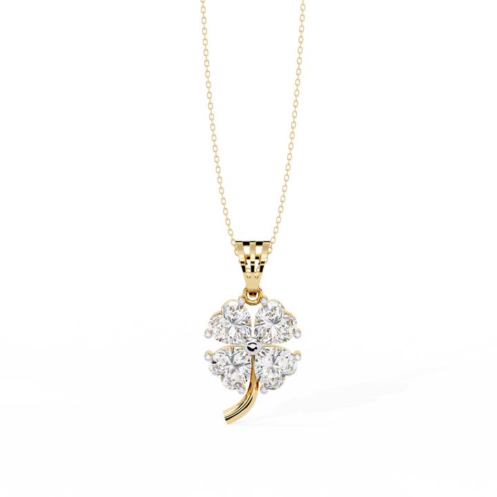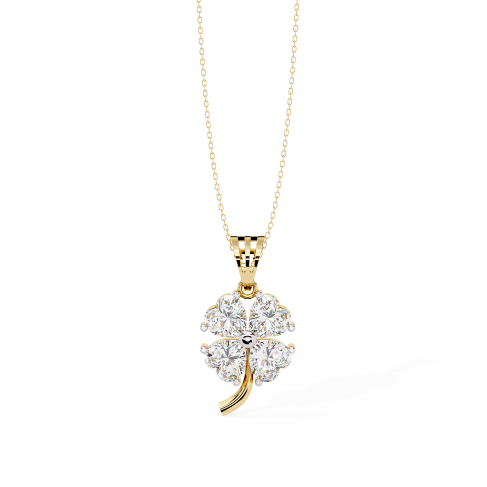 Four Stone Heart Cut Lab Grown Diamond Pendant 14k Rose Gold with Flower Pattern Link Chain Wedding Anniversary Engagement Gift