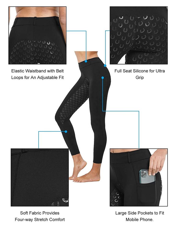 Four-Way Stretch Horse Riding Tights with Full Silicone Printing Seat and Phone Pockets Leggings for Equestrian Sports