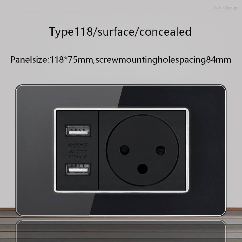 Four-color Tempered Glass Touch Panel Israel Standard USB C-type Fast Charging Wall Lamp Switch Socket Satellite TV Telephone