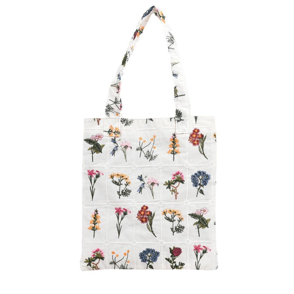 Four Seasons Tote Bag Country Style Everything Grows Flowers Embroidery Cotton Linen Embroidery Bag