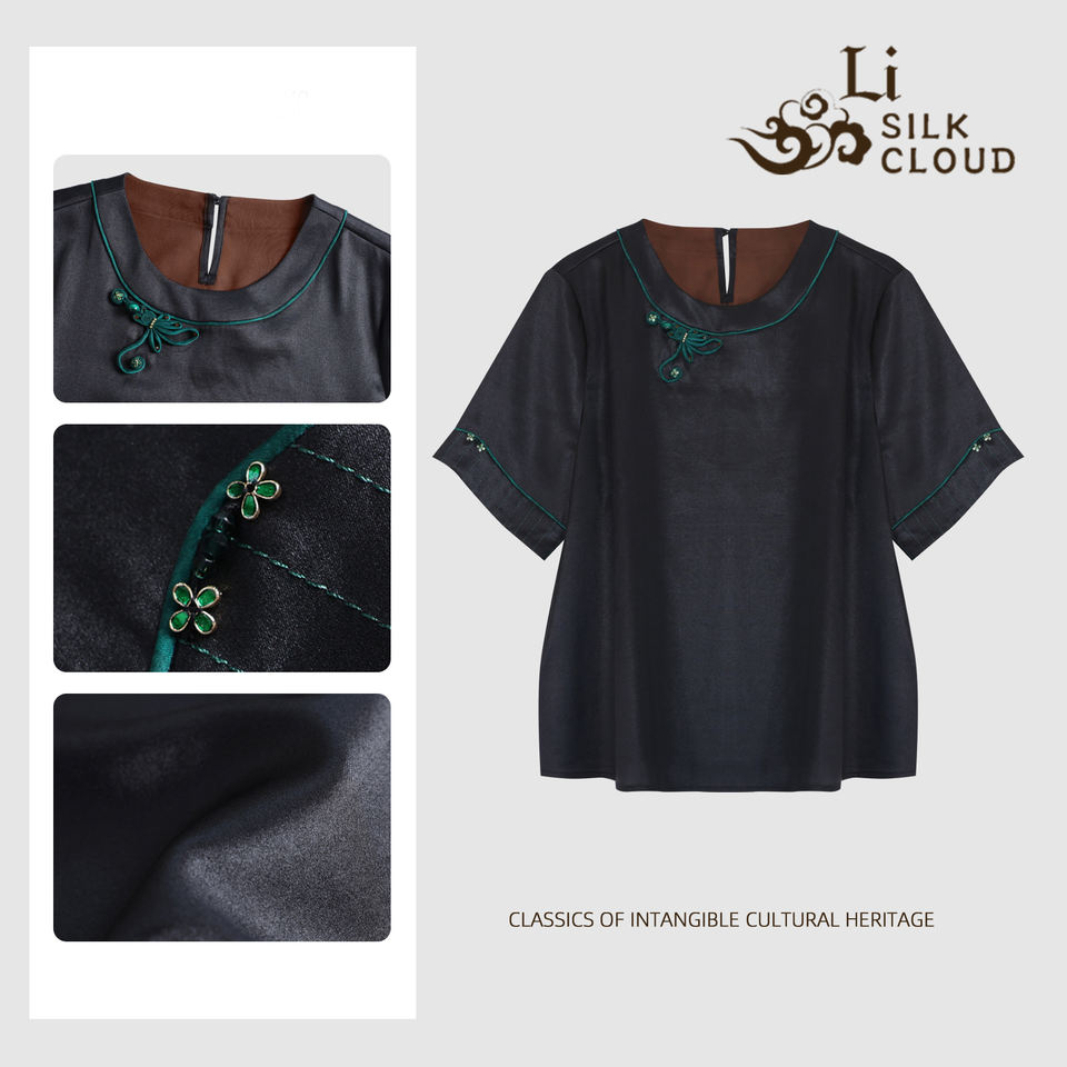 Type:New Chinese silk round neck top