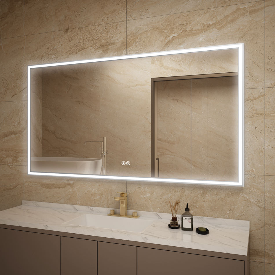 Framed Bedroom Led Mirror Antifog Rectangle Bathroom Mirror