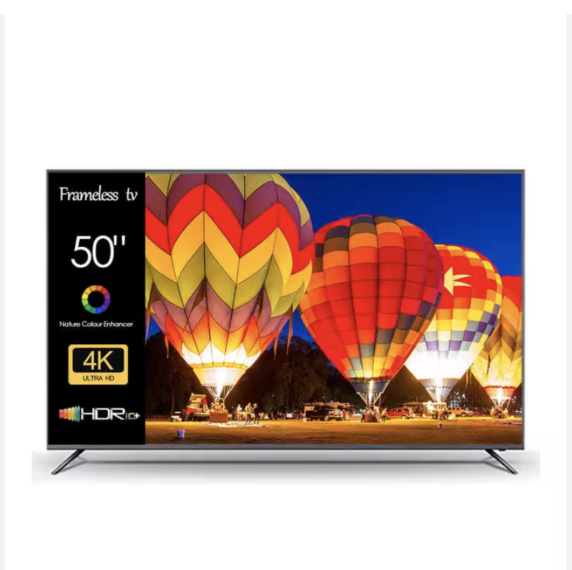 Frameless 4K HDTV 50 Inch LCD LED Smart TV with Google Android Customizable Resolution (4K/1080p) Built-in Speaker