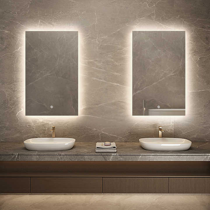 Frameless Rectangle Backlit LED Bathroom Mirror Anti-Fog Touch Control for Home or Hotel