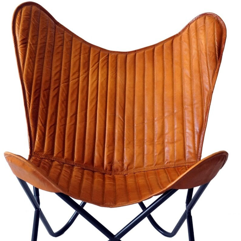 Franco TAN Rustic Leisure Chair Foldable Butterfly Design with Iron Stand Canvas Leather Mixture Seat for Outdoor Bedroom Use