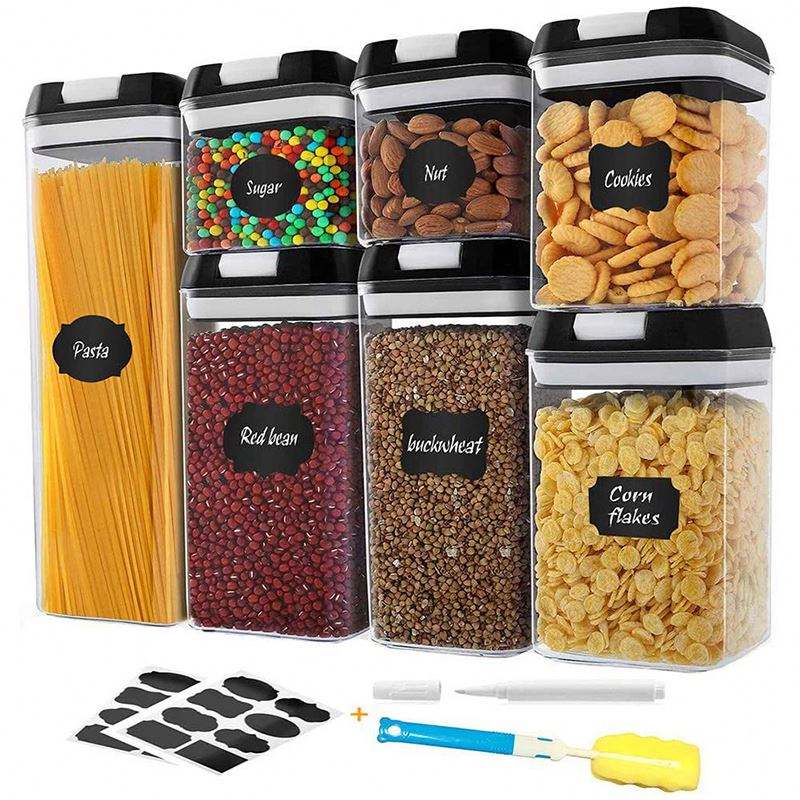 Free Airtight Plastic clear Sugar Flour Dry Food Cereal Kitchen Organizers 7 Pack Food Storage Containers Sets Free Airtight