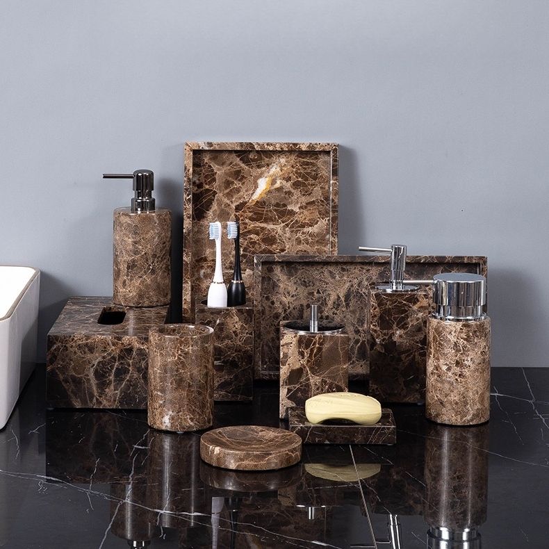 Free Combination Nature Marble Dark Emperador Brown Stone Empty Bathroom Toiletries Set Bathroom Amenities Kit