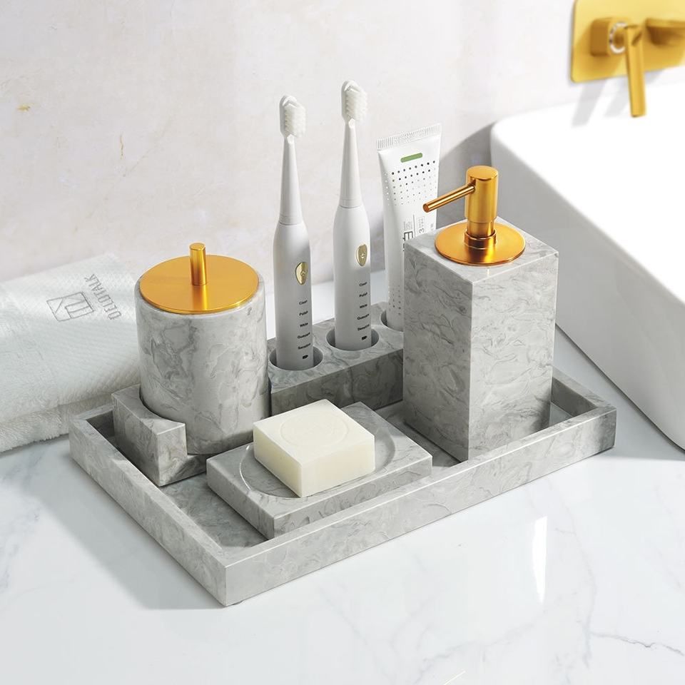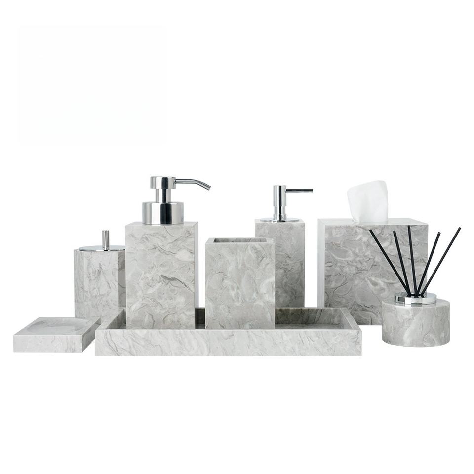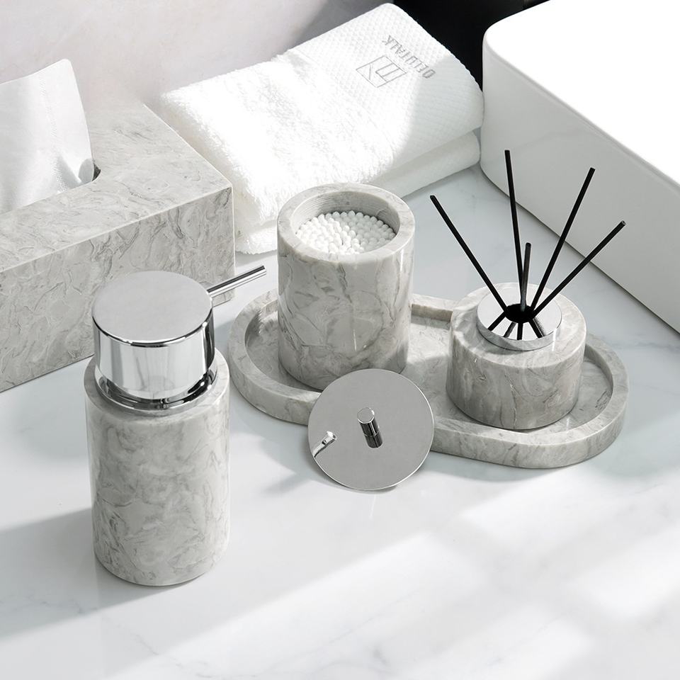 Free Combination Nature Marble King Flower Stone Empty Bathroom Toiletries Set Wabi Sabi Bathroom Amenities Kit