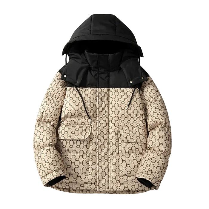 Free Custom Logo Unisex Winter Warm Waterproof Windproof Quilted Stand Collar Front Logo Hooded Puffer Jacket 2026