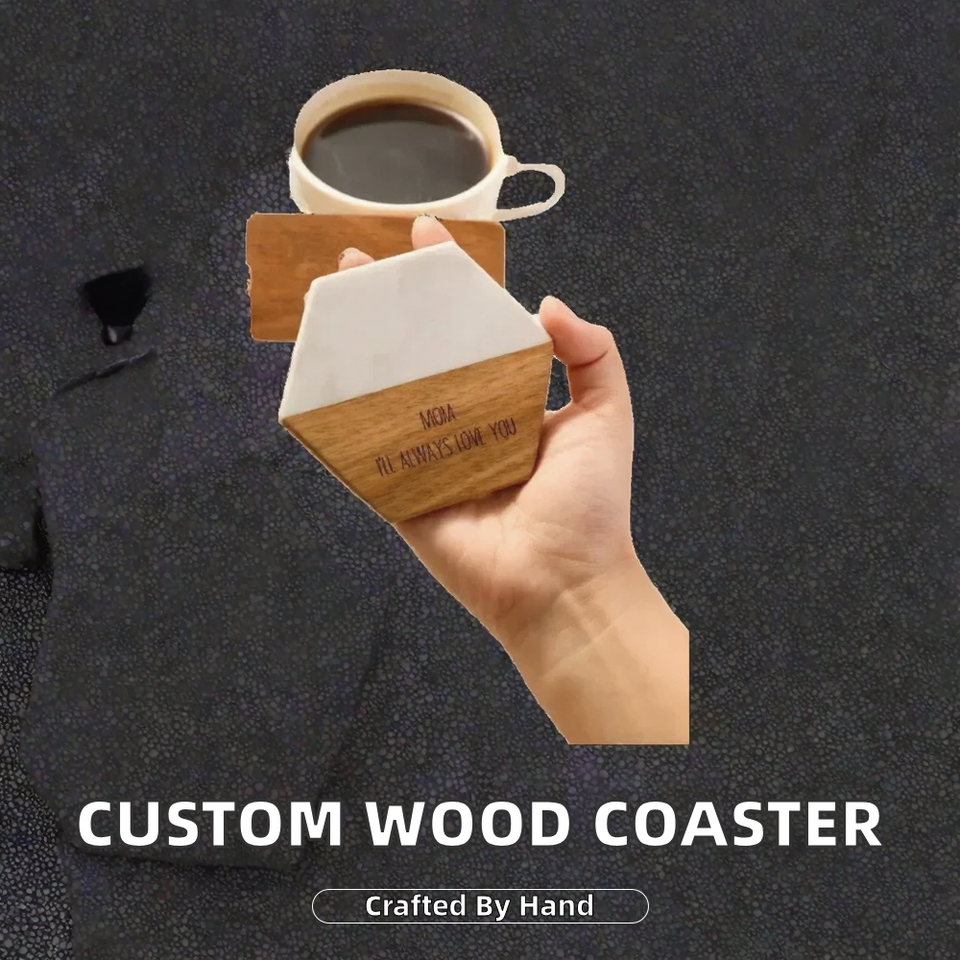 Free Custom Personalized Marble Acacia Wood Coaster Engraved Insulation Stone Wood Splicing Gifts for Colleagues and Friends