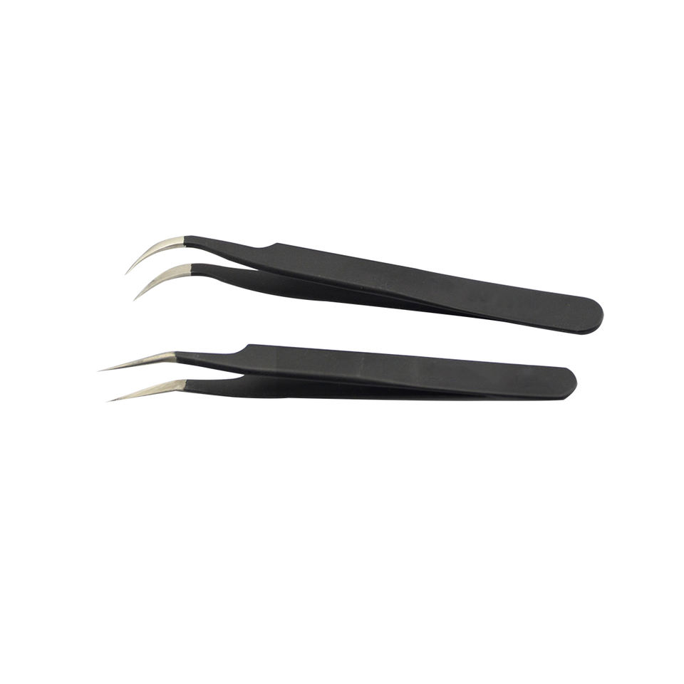 Free Custom Stainless Steel Fiber Tip All Black Gold Best Volume Eyelash Extension Tweezers Manufacturer Lash Tweezers