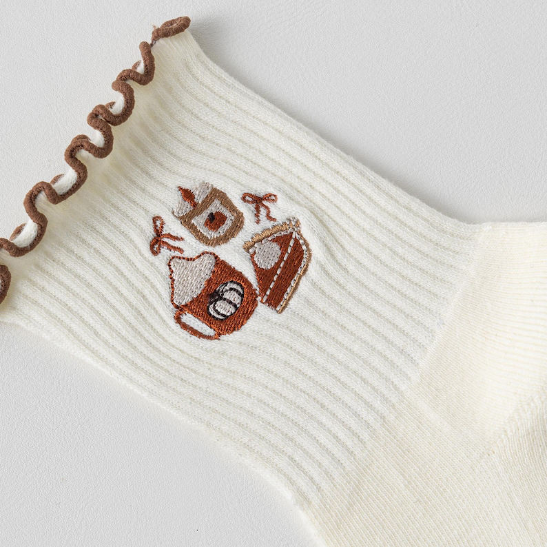 Free Mockup Custom Patterns Embroidery Cotton Pilates Socks for Women Soft Breathable Ruffle Non-slip Grip Yoga Socks Workout