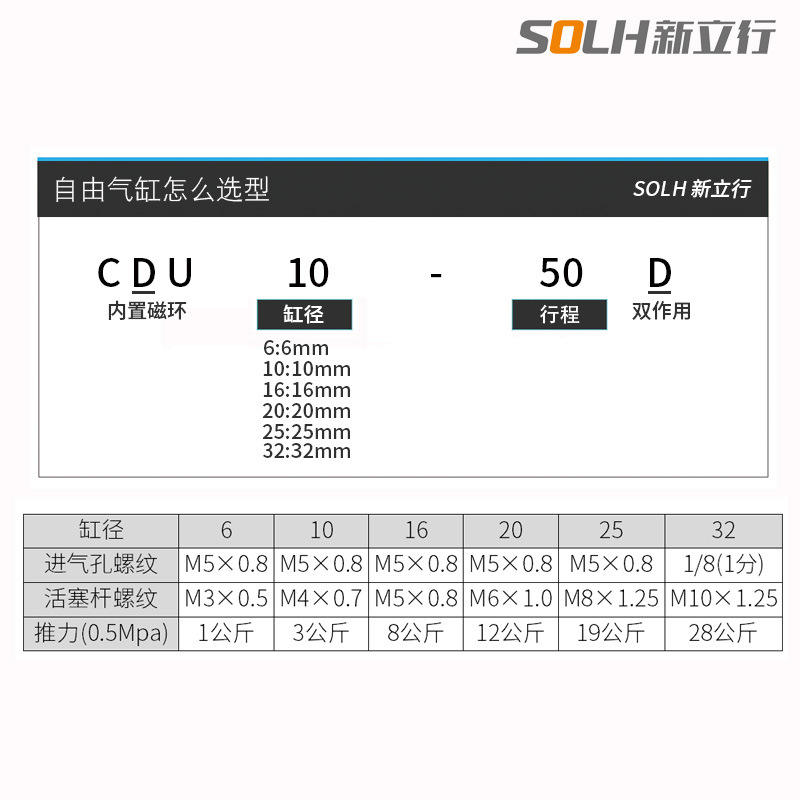 Free-Mounting Cylinder CDU16 Packaging Machine CU10 32-10D/15D/20D/25D/30D/40D/50D Pneumatic Fittings for Construction Air
