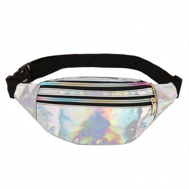 Free Sample 2023 Wholesale Custom Red Laser Holographic Women Designer Leather Fashion Phone Running Belt Bag