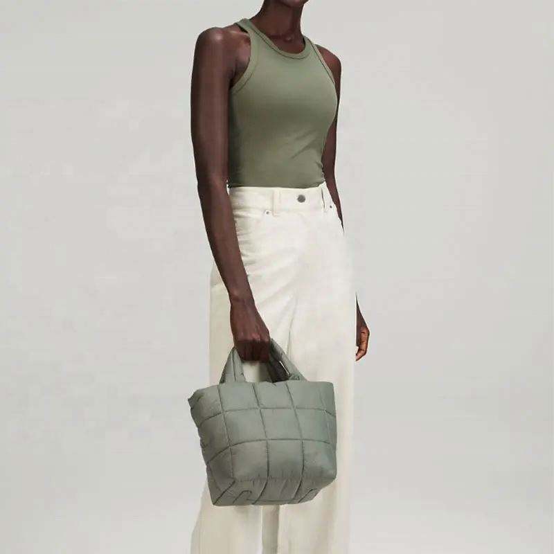 Free Sample 2023 Winter New Arrival Ladies Puffy Handbag Soft Waterproof Quilted Nylon Padded Custom Puffer Crossbody Tote Bag